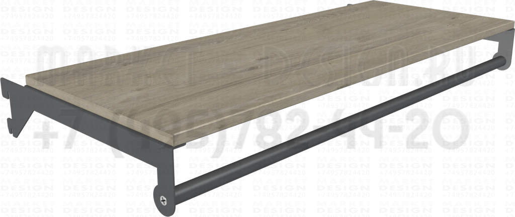 Прямая полка с круглой перекладиной для плечиков изготавливается из плиты ЛДСП с торцами обработанными кромкой ПВХ ,кронштейны для полок изготавливаются из стали толщиной 2-3мм.