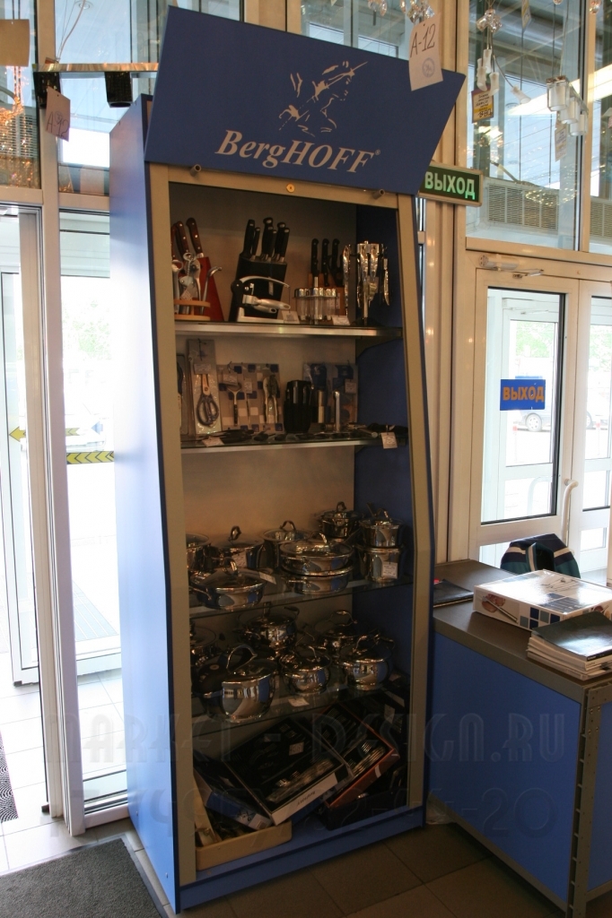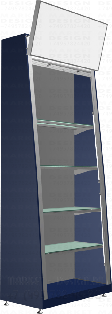 Дополнительная можно укомплектовать световым лайтбоксом для размещения графической информации , зеркальной задней стенкой ,подсветкой каждой полки, торцевой подсветкой справа и слева на боковых стойках, также можно место стандартных полок можно установить полки из металла.