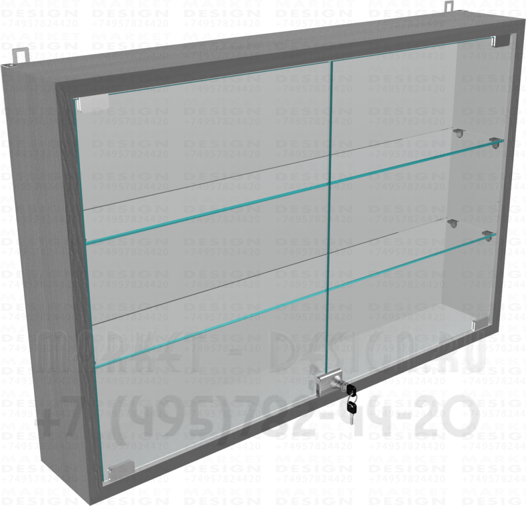 Настенная витрина с двумя стеклянными полками