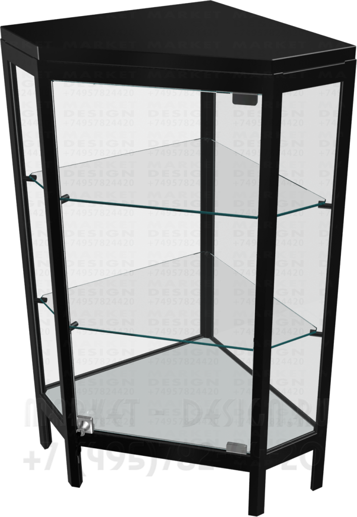 Низкая металлическая угловая витрина лофт со столешницей серия LOFT модель VHR-12 изготавливается из алюминиевого профиля с вставками из плиты МДФ или ЛДСП , стекло 5мм с полированными краями. В стандартном исполнении в витрины устанавливают 2 стеклянные полки с возможностью регулировки по высоте, распашные стеклянные дверки, замок для распашных дверей.