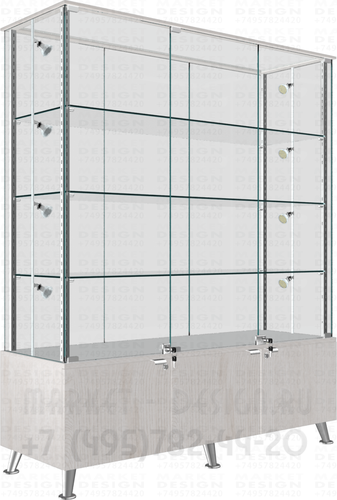 Стеклянная усиленная витрина серии УДАЧА модель В-7. В базовой комплектации шкаф оснащается замками, регулировкой полок по высоте, все внешние стеклянные части витрины изготавливаются из стекла марки м-1 толщиной 6мм, полки из закалённого стекла толщиной 8мм. все видимые торцевые части стекла с полированной кромкой (евро кромка). Нижняя и верхняя часть изготавливаются из мдф в сочетанием с плитой лдсп, комплектуется замками