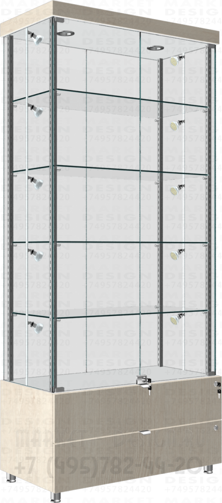 Прямоугольная усиленная витрина с тумбой серии КОНЦЕПТ модель В-4 с возможностью регулировки полок по высоте. Все внешние стеклянные части витрины изготавливаются из стекла марки м-1 толщиной 6мм, полки из закалённого стекла 8мм. все видимые торцевые части стекла с полированной кромкой (евро кромка). Нижняя и верхняя часть изготавливаются из мдф в сочетанием с плитой лдсп.
