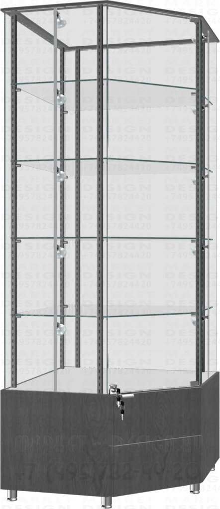 | VIT-PRIMAVERA-005V | Угловая усиленная витрина с стеклянном верхом и тумбой с распашной дверкой серии ПРИМАВЕРА | 50 000 |