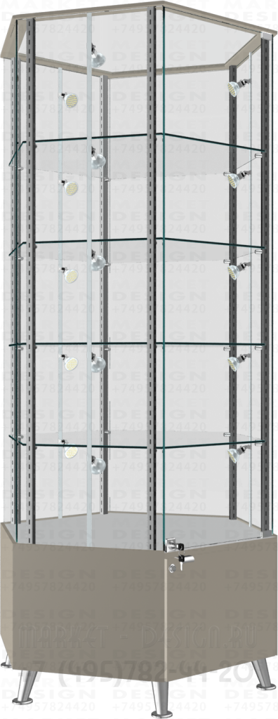 Витрина шестигранная усиленная на тумбе накопителе