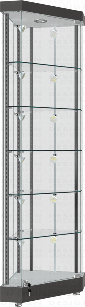 Угловая стеклянная витрина для магазина