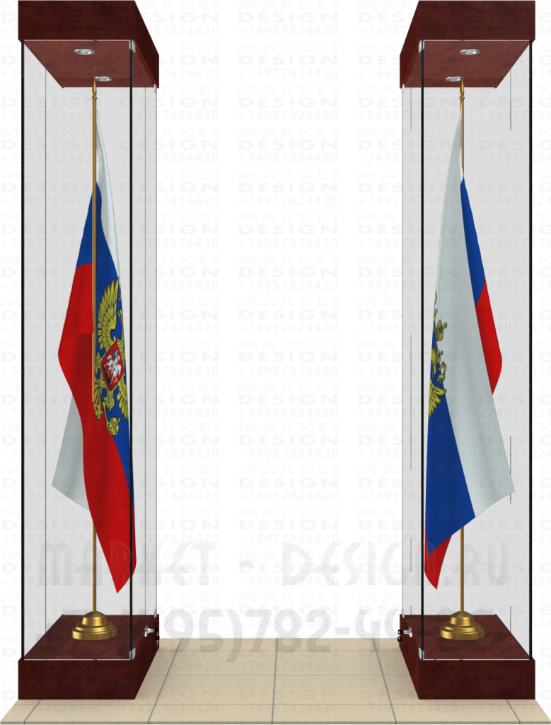 Квадратная стеклянная витрина для знамён высотой 1800мм.