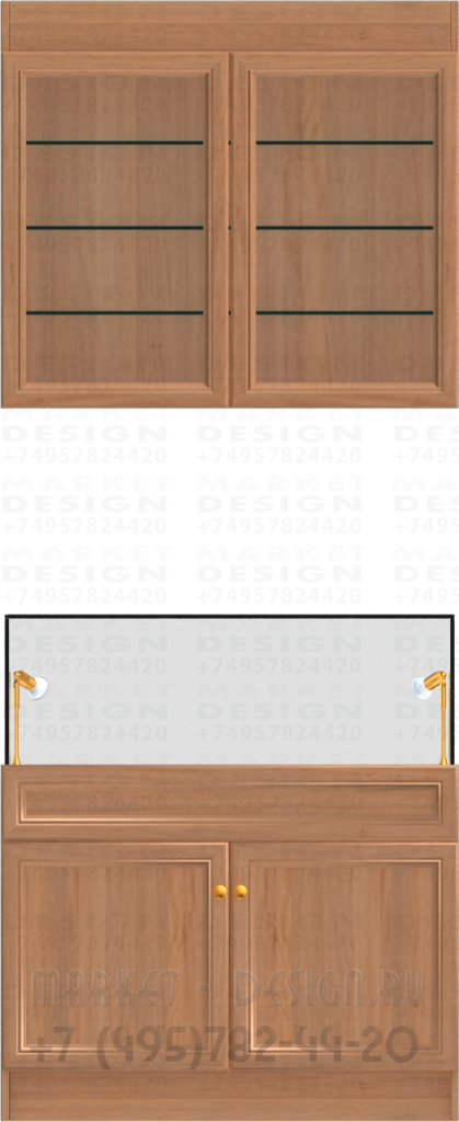 Стеклянная витрина с боковой подсветкой с подтоварной тумбой