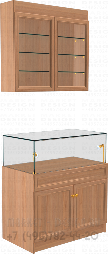 Стеклянная витрина с боковой подсветкой с подтоварной тумбой