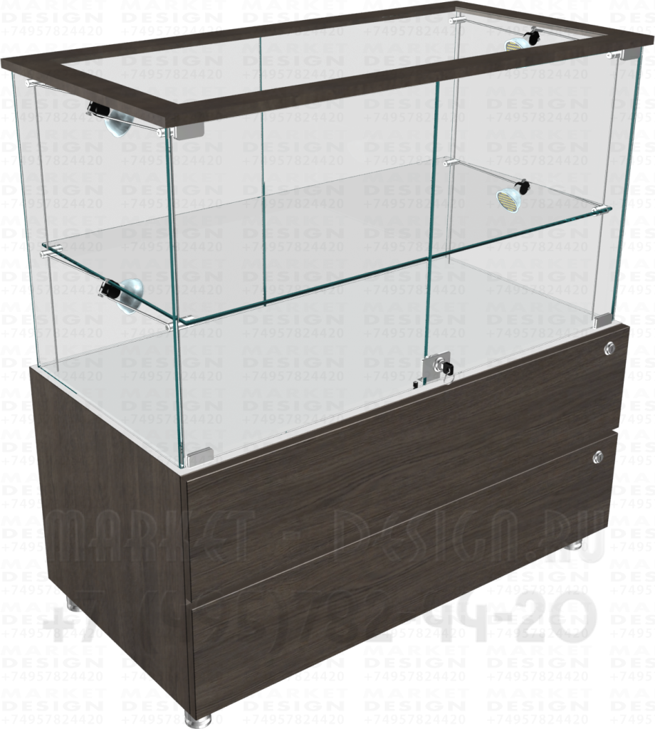 Стеклянная витрина с боковой подсветкой с подтоварной тумбой