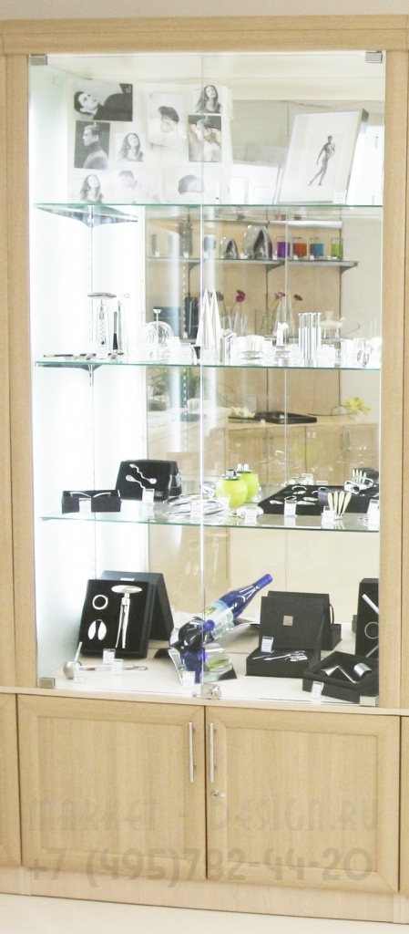 Стеклянная витрина с боковой подсветкой с подтоварной тумбой