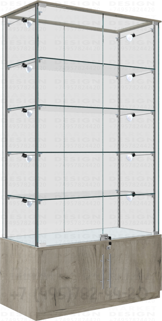 - Стеклянная витрина с боковой подсветкой с подтоварной тумбой