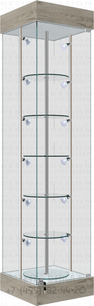 Торговая квадратная витрина с вращающимися полками для демонстрации комплектов бижутерии., полностью прозрачная, внутри 5 крутящихся стеклянных полок. Толщина стекла 6 мм, обработка края стекла полировка (евро кромка). Большой выбор расцветок. Нижняя и верхняя часть сделана из мдф толщиной 18мм.. Дверь распашная, закрывается на замок. В витрине предусмотрены точечная подсветка каждой полки и зеркальная задняя стенка. Стандартная комплектация (2 галогенновых светильника ,трансформатор, вилка , трубка для незаметной проводки вилки в нижнию часть витрины).