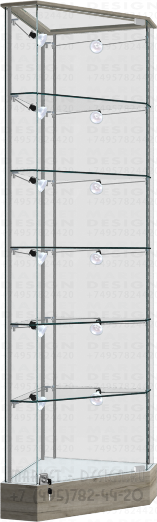 Глянцевая угловая витрина с подсветкой в боковых стойках