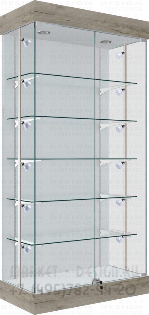 Торговая витрина для демонстрации бижутерии, прозрачные передние и боковые части витрины , внутри 5 полок. Двери распашные закрываются под замок. Толщина стекла 6 мм, обработка края стекла полировка (евро кромка). Большой выбор расцветок. Нижняя и верхняя часть сделана из мдф толщиной 18мм.. Задняя стенка лдсп с направляющими из хромированной стали, полки крепятся на кронштейны. В витрине предусмотрены точечная подсветка каждой полки. Стандартная комплектация (2 галогенновых светильника ,трансформатор, вилка , трубка для незаметной проводки вилки в нижнию часть витрины).