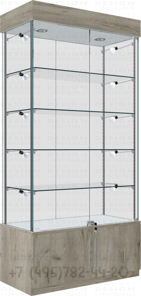 Стеклянная витрина с боковой подсветкой с подтоварной тумбой