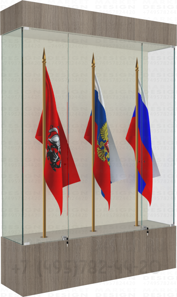 Стеклянная витрина ромб для демонстрации знамён высотой не более 1800 мм
