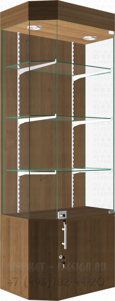 Стеклянная витрина с боковой подсветкой с подтоварной тумбой