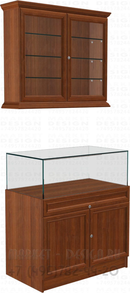 Высокая витрина с тумбой для домашнего музея