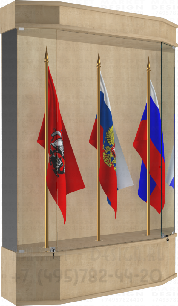 Стеклянная витрина ромб для демонстрации знамён высотой не более 1800 мм