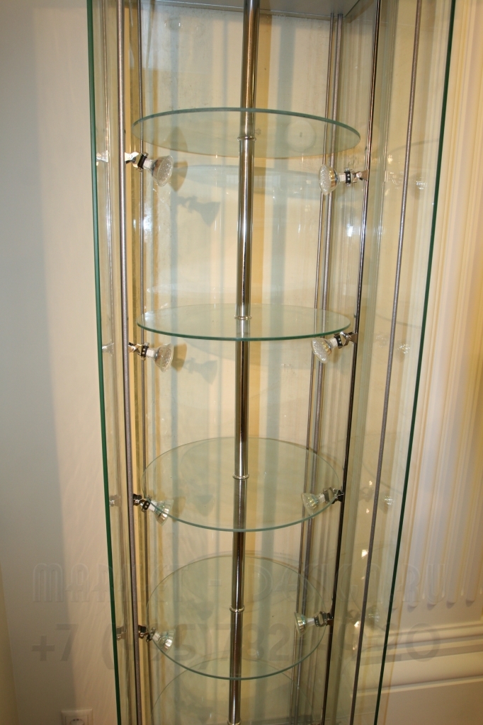 Глянцевая угловая витрина с подсветкой в боковых стойках