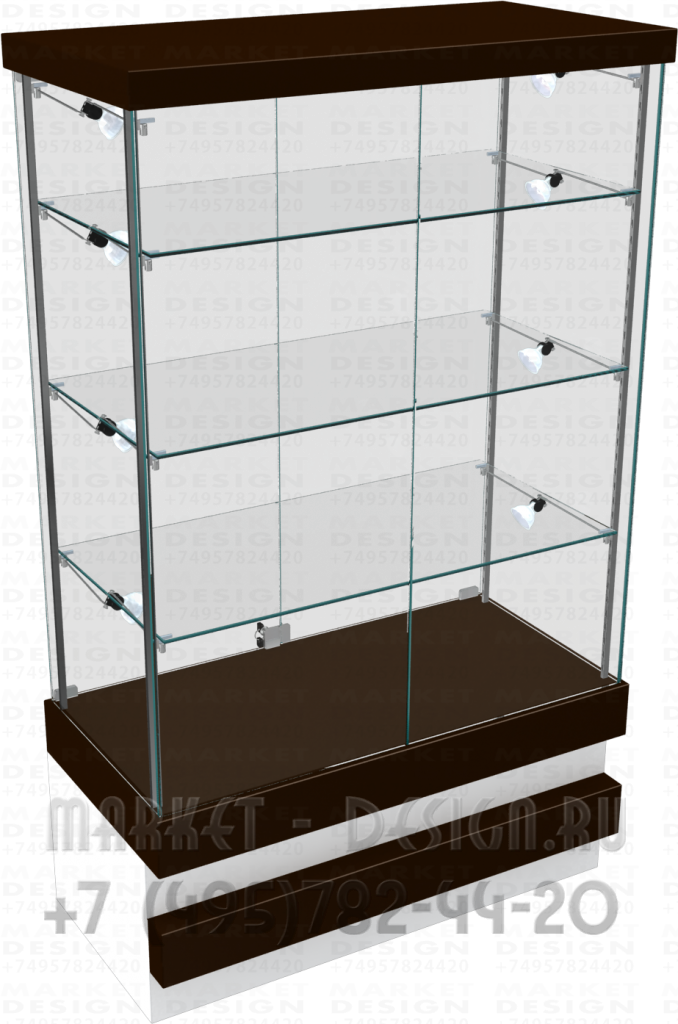 Стеклянная витрина с боковой подсветкой с подтоварной тумбой