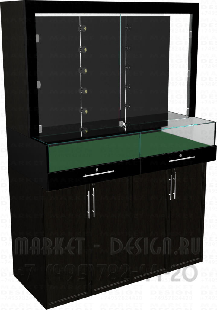 Витрина для ружей с встроенным прилавком выдвижные ящики