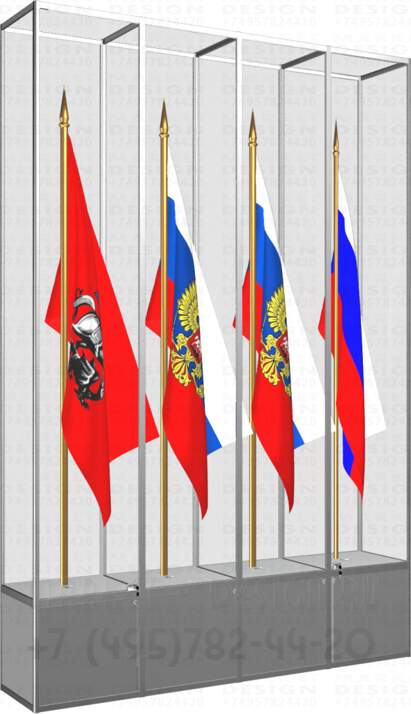Стеклянная витрина ромб для демонстрации знамён высотой не более 1800 мм