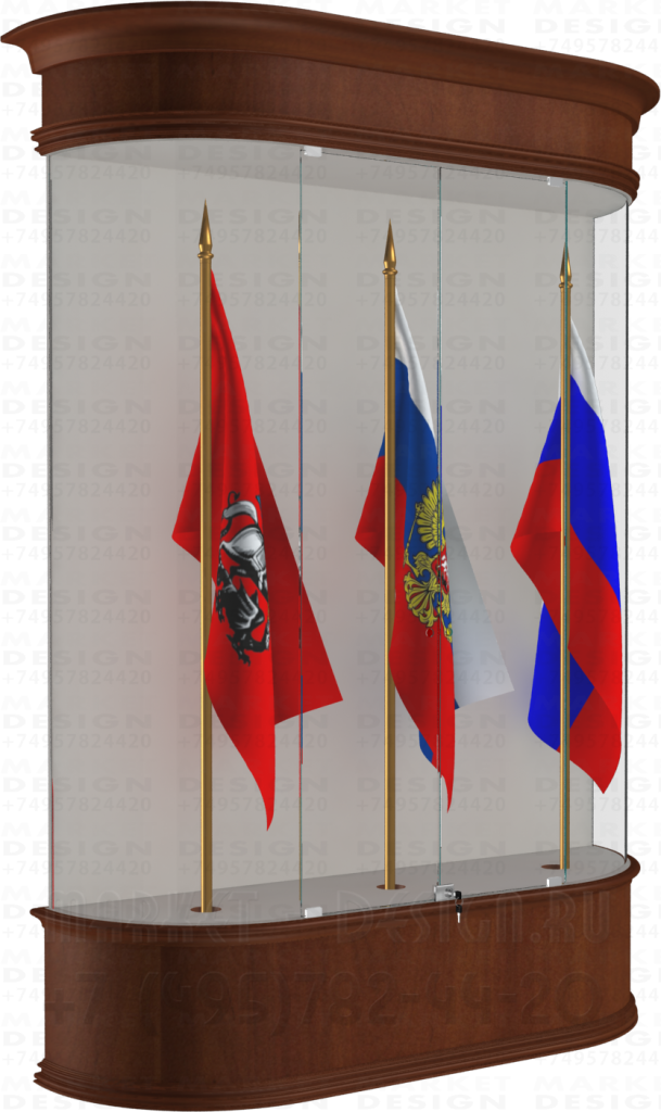 Стеклянная витрина ромб для демонстрации знамён высотой не более 1800 мм