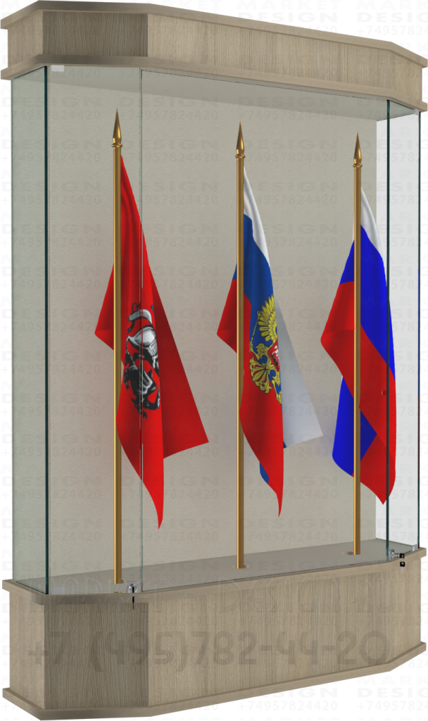 Стеклянная витрина ромб для демонстрации знамён высотой не более 1800 мм