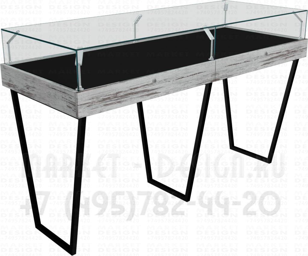 Прилавок витрина для демонстрации товаров на высоких ножках