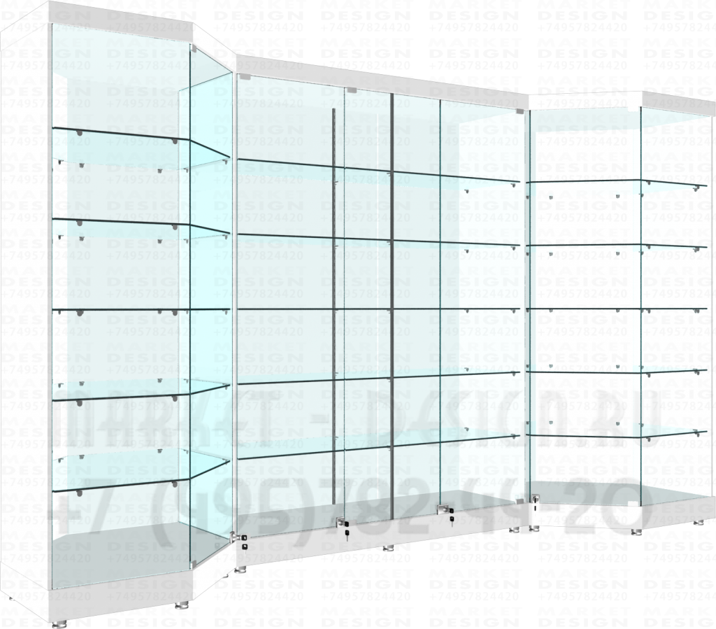 Глянцевая угловая витрина с подсветкой в боковых стойках