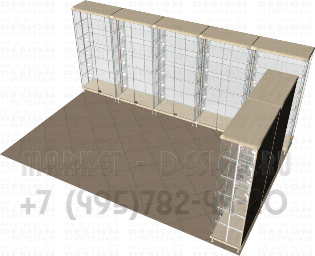 Торговая витрина с боковой подсветкой и тумбой под товар