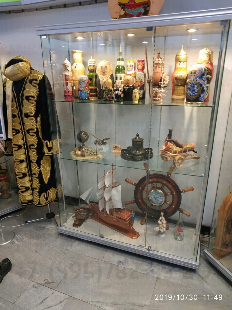 Большая витрина для магазина серия Ноэ модель В-7 с возможностью регулировки полок по высоте, все стеклянные части витрины с полированным краем стекла (евро кромка). Нижняя и верхняя часть сделана из мдф в сочетанием с лдсп толщиной 16мм.