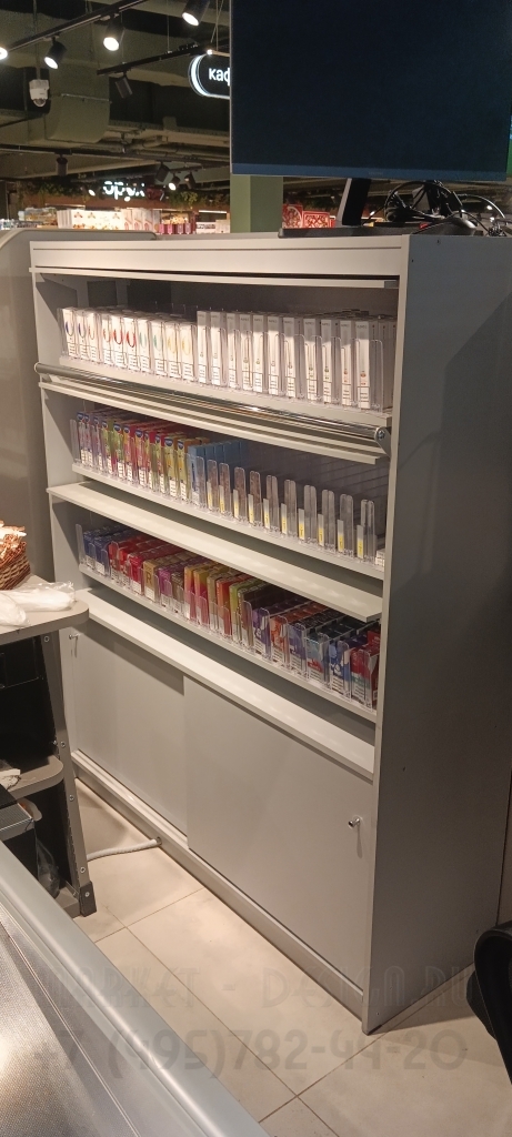 шкаф для продажи сигарет с рольставнями и дневной шторкой