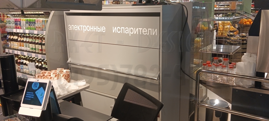 Павильон для продажи табачных изделий в прикассовой зоне супермаркета