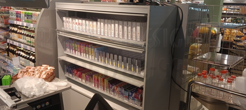 Комбинированный торговый шкаф для сигарет с возможностью демонстрации высоких упаковок (для электронных сигарет 200мм высотой)
