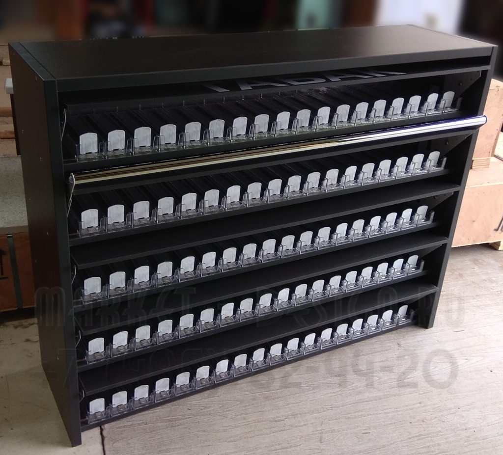 Сигаретный шкаф с десятью гравитационными уровнями на 150 видов сигарет