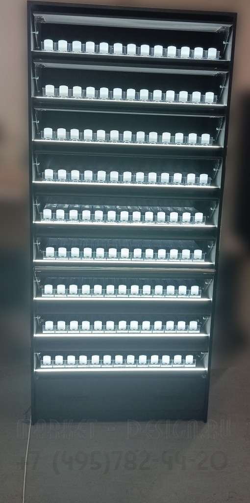 Шкаф для сигарет с подсветкой на каждой полке |