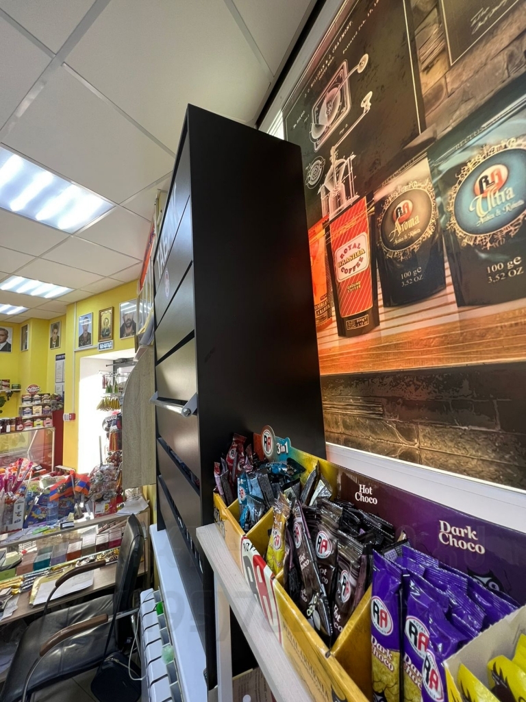 шкаф для продажи сигарет с рольставнями и дневной шторкой