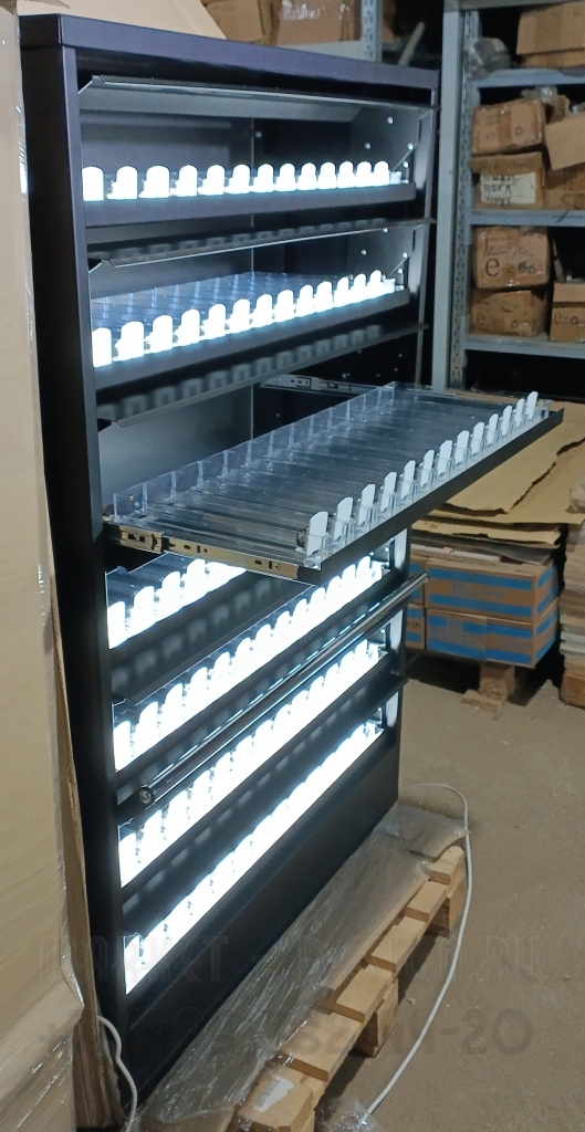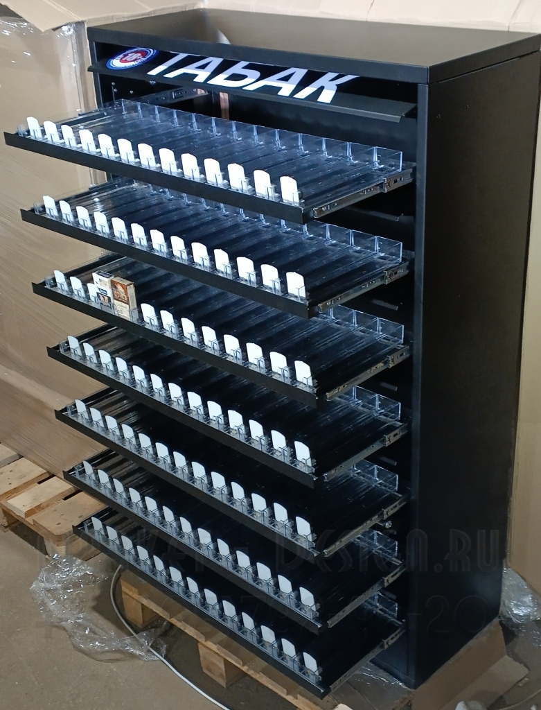 Шкаф для табачных упаковок с гравитационными полками