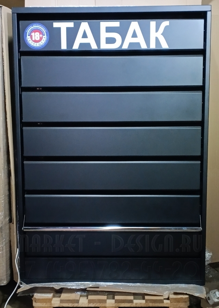 Тумба для продажи табака с шестью полками по высоте