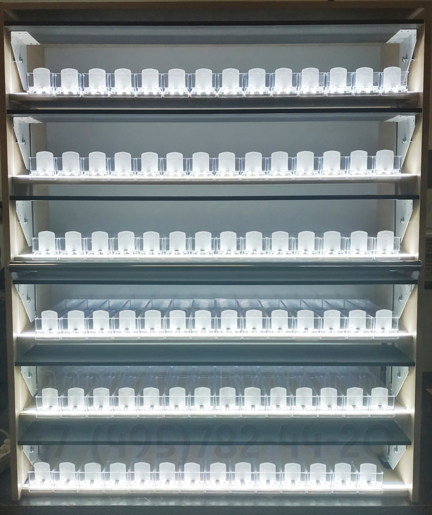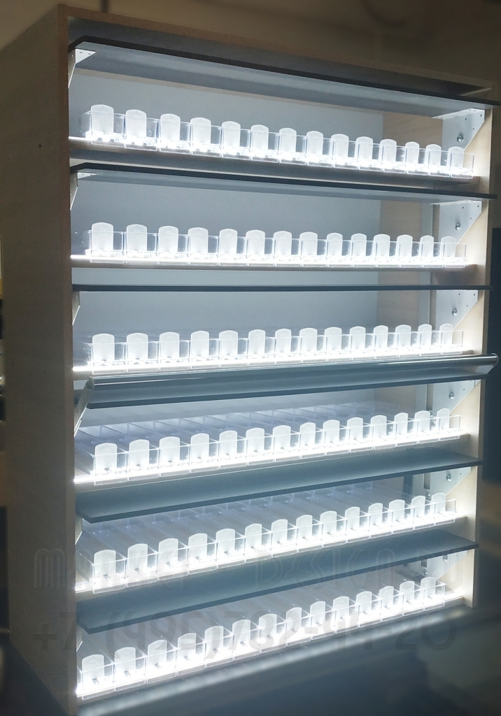 - Сигаретный настольный шкаф с подсветкой каждой полки для АЗС