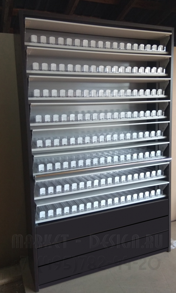 Стеллаж диспенсер для сигарет с металлическими шторками