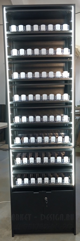 Стеллаж диспенсер для сигарет с металлическими шторками
