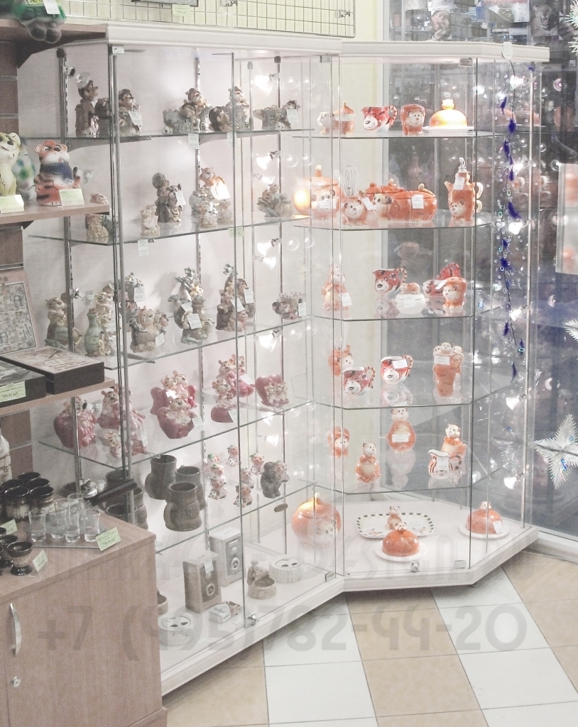 Угловая витрина с регулировкой полок для демонстрации товаров